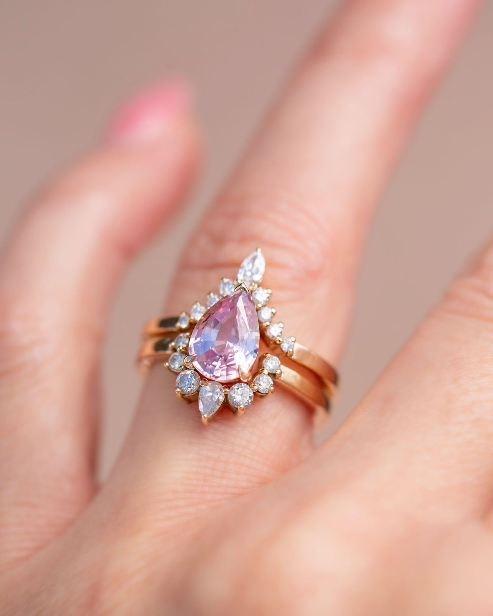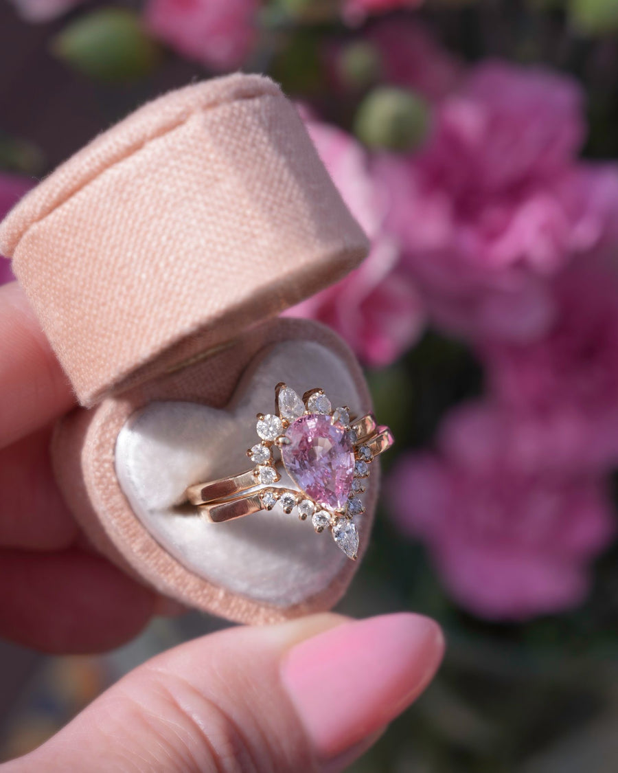 Pear Shape Pink Sapphire and Diamond Engagement Ring Set 14K Gold