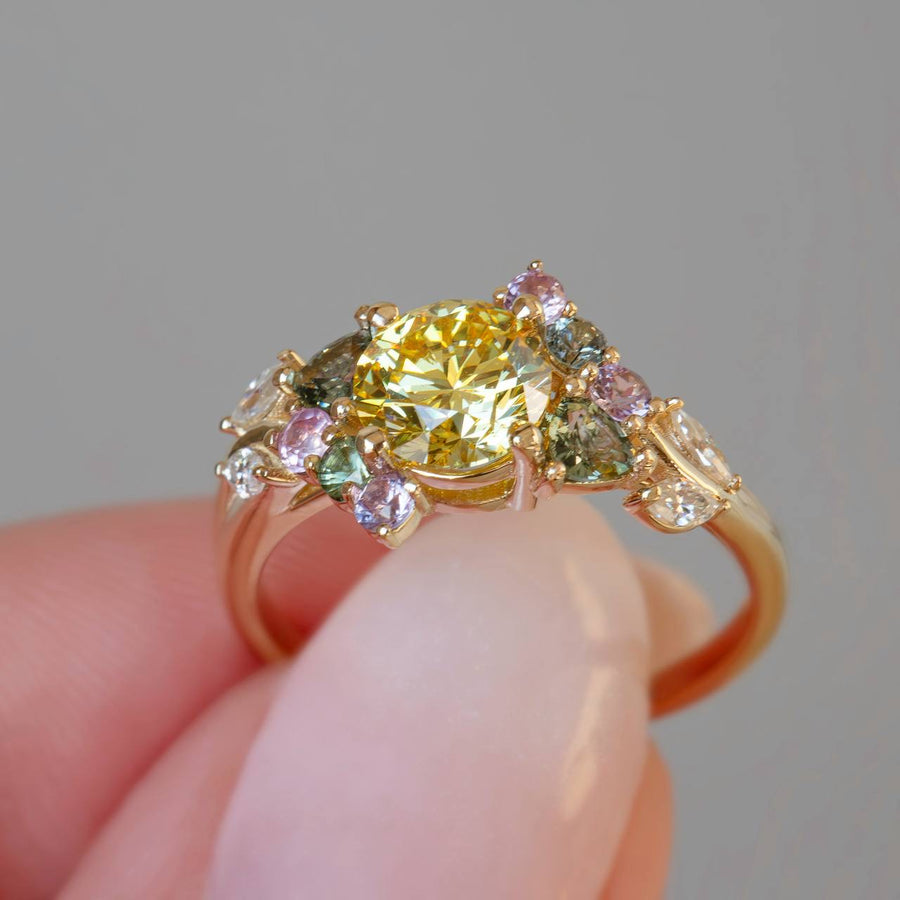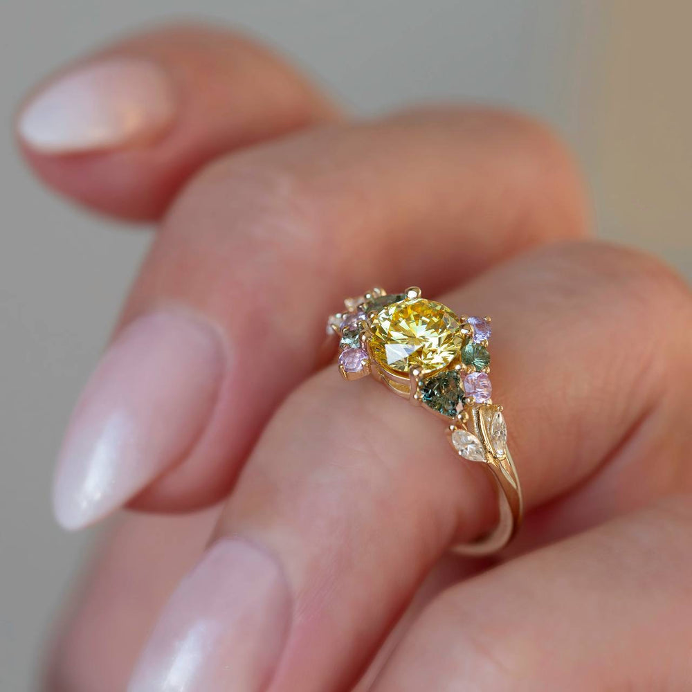 Enchanted Garden Yellow Diamond Engagement Ring | Nature Inspired Floral Sapphire Ring 14K Gold